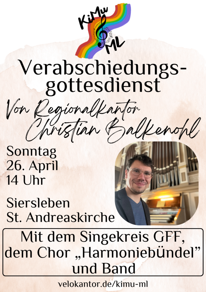 Seit 2024 war ich als Regionalkantor in den Pfarrbereichen Gerbstedt, Helbra, Mansfeld und Welbsleben tätig. Viele Gottesdienste, Proben und Begegnungen liegen in dieser Zeit – und viele gemeinsame Lieder. Musik hat uns zusammengeführt, hat Gottesdienste getragen und manchmal vielleicht auch ein Stück Himmel hörbar gemacht.